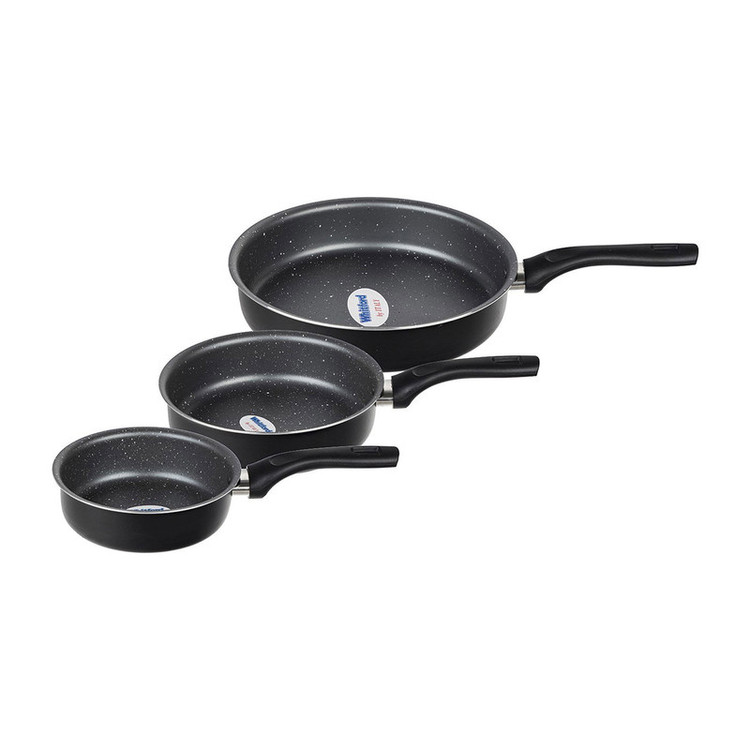 ست تابهی سهپارچهی «تکنو ظرف» مدل «Black 01» شامل سه عدد تابه با پوشش نچسب است که برای پخت غذا با روغن کم، انتخابی ایدئال محسوب میشود. بدنهی این تابهها از جنس آلومینیوم ساخته شده است؛ به همین جهت خیالتان از کیفیت بدنه و دوام آنها آسوده خواهد بود. هر سه تابه ارتفاعی 5 تا 6 سانتیمتری دارند. این تابهها در سایزهای 16، 20 و 26 سانتیمتری تولید شدهاند. دستهی این سه تابه از جنس باکالیت بوده و شرکت تکنو از روکش گرانیت در ساخت این محصول استفاده کرده است. دستهها برای اینکه بهتر در دست قرار بگیرند، کمی خمیده طراحی شدهاند. وجود سه اندازهی مختلف کوچک، متوسط و بزرگ تابه در این مجموعه موجب کاربردیترشدن آن شده است و میتوانید پخت انواع غذاها را در این ست سهپارچه تجربه کرده و اندازهی آن را با توجه به تعداد افراد انتخاب کنید.