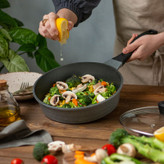 سرویس پخت و پز 5 پارچه تکنو مدل اورس یک سرویس جمع و جور مناسب برای خانواده های کم جمعیت تولید شده است. این سرویس از جنس دایکاست آلومینیوم (چدن ) و با پوشش گرانیت نچسب تولیدشده و دارای 2 قابلمه در سایز های 20 و 24 و یک تابه تکدسته در سایز 24 می باشد. جنس بدنه قابلمهها و تابهها چون دراین روش در حالت فشارقالب گیری میشود ساختارمقاومی دارد و باعث میشود گرما به سرعت و بهطور یکنواخت منتقل شود و غذاها بهروش بهتری طبخ شوند. سرویس پخت و پز 5 پارچه تکنو مدل اورس ، با ویژگی های بیان شده، یک انتخاب عالی برای داشتن یک تجربه آشپزی مطمئن و راحت است. این سرویس دارای جنس کفه دو جداره و در شیشه با نوار استیل است که باعث تحمل دمای بالا و حفظ حرارت بهتر غذا میشود. همچنین، دارای سیستم با سوپاپ تخلیه بخار است که در فشار بخار غذا، احتیاج به هیچ گونه دخالت اضافی برای تخلیه بخار ندارد. روکش گرانیت قابلیت نچسب بودن روی کفه را دارد و باعث جلوگیری از چسبیدن مواد غذایی به کف ظرف خواهد شد. قپه این سرویس از جنس باکالیت ساخته شده است که باعث ایمنی در دستان شما میشود. این سرویس قابل استفاده در اجاق گاز بوده و همچنین قابل شستوشو با دست را داراست.