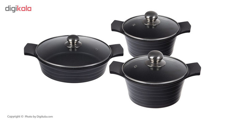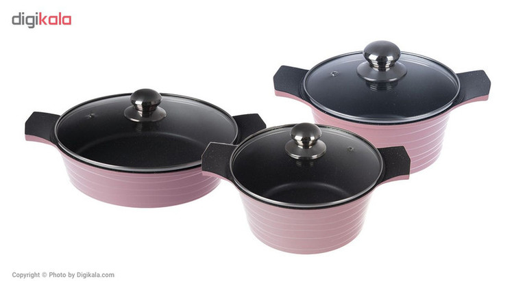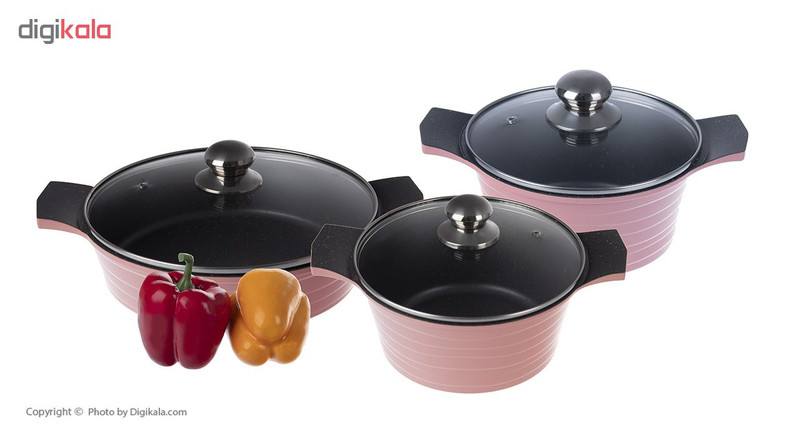 سرویس پختوپز 6 پارچه «Tecno» (تکنو) مدل «Venus» شامل دو عدد قابلمه با سایز 20 و 24 سانتیمتر و یک عدد تابه با سایز 28 سانتیمتر است. تمامی اقلام این سرویس دارای درپوش بوده که از شیشه ساخته شده و دارای یک رینگ استیل هستند. روی هر کدام از درپوشها یک سوپاپ خروج بخار تعبیه شده که کمک میکند تا بخار اضافی بهخوبی از ظرف خارج شود. قپههای سرویس تکنو از استیل است که در برابر حرارت بسیار مقاوم هستند. بدنهی این سرویس از آلومینیوم انتخاب شده و روکش داخلی آن گرانیت است. خیلی از افراد تمایل دارند ظروف پخت خود را در فر قرار دهند؛ اما مشخص است که همهی ظروف این قابلیت را ندارند و باید از ظروفی استفاده کنید که دستههایی از جنس بدنه داشته باشند. این محصول دارای رنگبندی متنوع بوده که به شما این امکان را میدهد تا رنگ موردعلاقهی خود یا متناسب با دکوراسیون را انتخاب کنید.