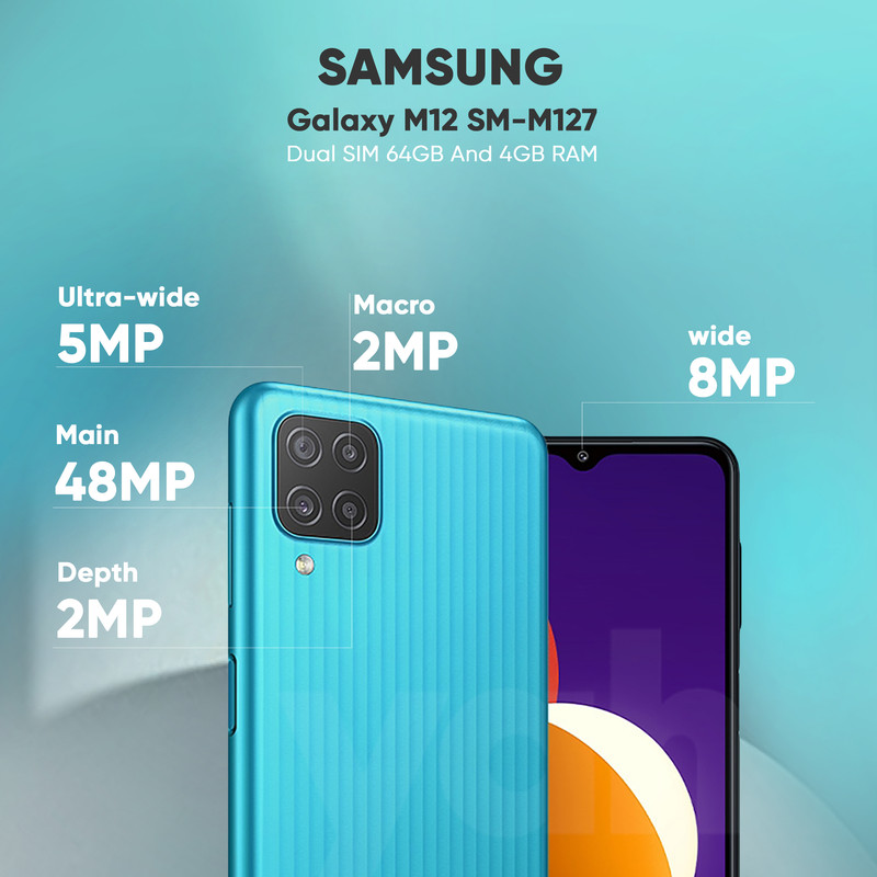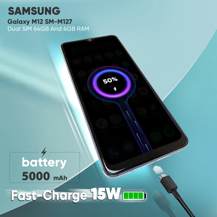 گوشی موبایل سامسونگ مدل Galaxy M12 SM-M127 دو سیم‌کارت ظرفیت 64 گیگابایت و رم 4 گیگابایت - اکتیو