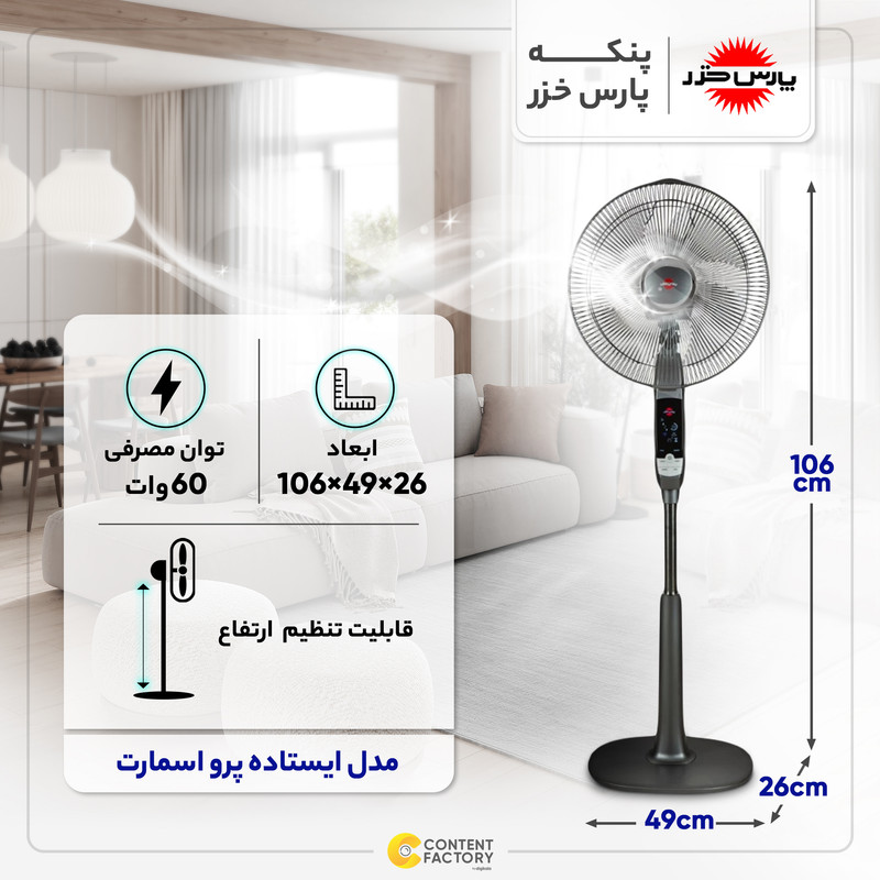 پنکه از آن دسته کالاهایی است که نسبت به کولرهای آبی و گازی، گزینهای به صرفه و اقتصادی حتی در فصول دیگر به جز تابستان به حساب میآید. به همین دلیل هم بسیاری از افراد به دنبال محصولی به معنی واقعی کلمه خنککننده و خوش ساخت که چندان جاگیر هم نباشند، برای خانهی خود هستند. در میان انواع پنکههای رومیزی، ایستاده یا سقفی از برندهای مختلف، یکی از مدلهای محبوب و پرفروش از برند ایرانی پارس خزر، پنکه پارس خزر مدل ایستاده پرو اسمارت است. این مدل پنکهی ایستاده، زیبا، با امکان تنظیم ارتفاع و با قابلیت اتصال به گوشی اسمارت اندرویدی است و در کنار آن با وجود دوام و طراحی مستحکمی که دارد میتواند تا سالهای سال در کنار شما باشد. پنکه پارس خزر مدل ایستاده پرو اسمارت نمایشگری دیجیتال و صفحه کلیدی لمسی دارد و همراه با کنترل از راه دور و قابلیت تنظیم هوشمند سرعت پروانه متناسب با تغییر دمای محیط راحتی در استفاده و خنکی را برای خریداران به ارمغان میآورد.