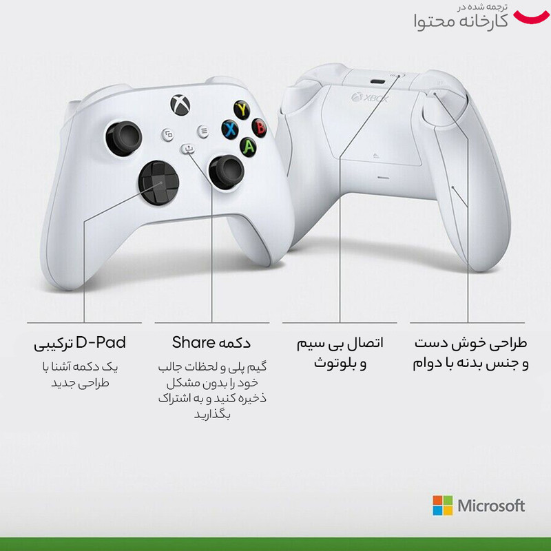 مایکروسافت برای نسل جدید کنسول ایکس باکس، مدل جدیدی از کنترلر ایکس باکس را ساخته که از نظر ارگونومی و چند ویژگی نرمافزاری، برتریهایی نسبت به کنترلرهای فعلی ایکس باکس دارد.مایکروسافت به جای طراحی یک کنترلر جدید، کنترلر ایکس باکس وان را از نظر ظاهری بهبود بخشیده است. این کنترلر جثه و ابعاد نسبتا کوچکتری نسبت به کنترلر ایکس باکس وان دارد و دکمه D-Pad آن نیز تغییر کرده است.این دکمه اکنون مشابه دکمه D-Pad کنترلر الیت ایکس باکس است و فضای خالی بین چهار جهت اصلی با دکمههای پیوسته پر شده است تا کار کردن با آن راحتتر شود. همچنین، دکمههای ماشهای این کنترلر دارای بافتی نسبتا زبر هستند که باعث کاهش تعرق و کنترل بیشتر و انتقال لرزش بهتر میشود. دکمههای ماشهای نیز بهبود یافتهاند و فشار دادن آنها بهتر احساس میشود.نکته قابل توجه در این کنترلر، اضافه شدن دکمه Share در وسط کنترلر است که نبود آن در کنترلر ایکس باکس وان به شدت احساس میشد. با اضافه شدن این دکمه، دیگر لازم نیست برای به اشتراک گذاشتن محتوای خود از بازیها، وارد یک اپلیکیشن جدا شوید و خیلی سریع میتوانید اسکرینشاتها و کلیپهای خود را به اشتراک بگذارید.کنترلر جدید ایکس باکس دارای قابلیتی به نام محاسبه تأخیر پویا (Dynamic Latency Input) است که به بازیسازان این امکان را میدهد تا قابلیتهای تعاملی بازیهای خود را بهبود ببخشند. با این ویژگی، هماهنگی بین فشار دکمهها روی کنترلر و اتفاقات درون بازی، به لطف اتصال بیسیم 2.4 گیگاهرتزی کنترلر به کنسول، بهبود پیدا میکند و دقت و سرعت عمل گیمر بیشتر میشود.کنترلر جدید ایکس باکس با کنسولهای ایکس باکس وان کاملا سازگار است و عملکرد آن در ایکس باکس وان و ایکس باکس سری ایکس|اس هیچ تفاوتی نخواهد داشت. این کنترلر با ویندوز 10 نیز سازگاری کامل دارد.مایکروسافت همچنان به استفاده از باتریهای قلمی تأکید دارد. فیل اسپنسر معتقد است که هنوز تعداد زیادی استفاده از باتری قلمی را به باتری قابل شارژ ترجیح میدهند در نتیجه، مدل جدید کنترلر ایکس باکس نیز از باتریهای قلمی استفاده خواهد کرد. البته احتمالا مایکروسافت باتریهای قابل شارژ مانند کنترلر ایکس باکس وان عرضه خواهد کرد که با استفاده از کابل USB C شارژ خواهند شد.