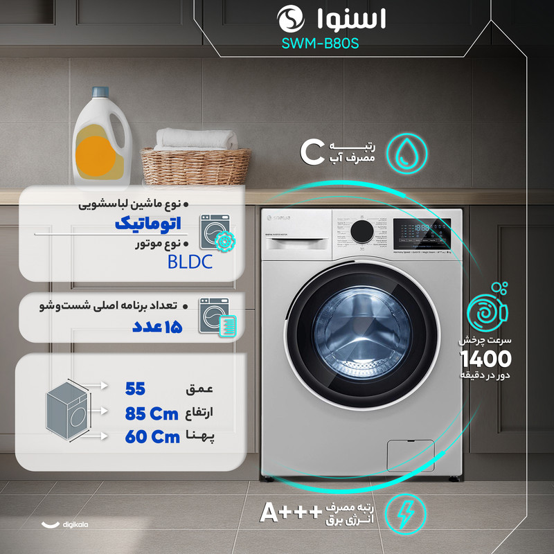 ماشین لباسشویی 8 کیلوگرم اتوماتیک اسنوا مدل SWM-B80S