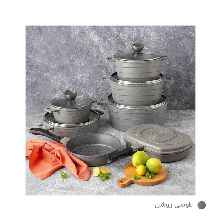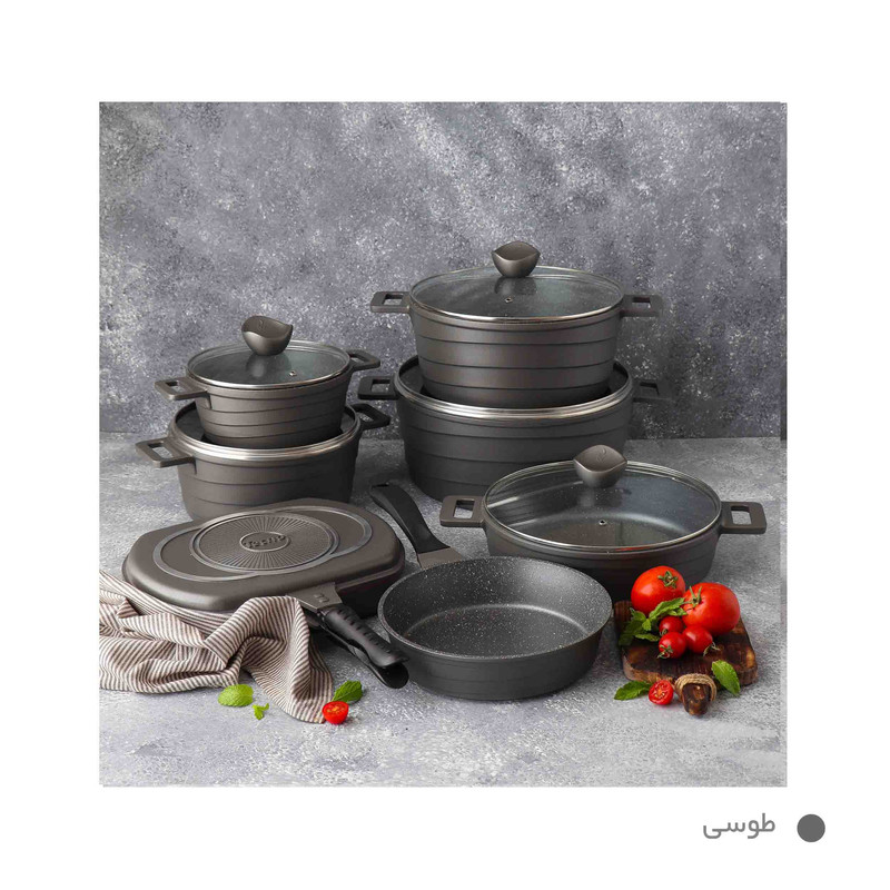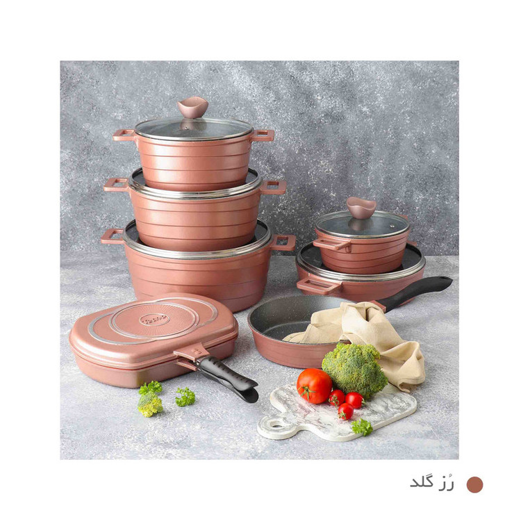 این سرویس شامل چهار عدد قابلمه در سایزهای 20، 24 ،28، 32 و یک تابه دو دسته 28 و یک تابه رژیمی می باشد.