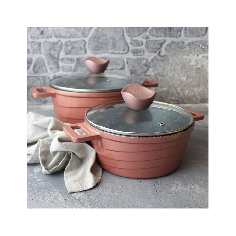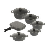 جنس دستگیره این سرویس با جنس بکاررفته در بدنه (چدن) همسان بوده و درنتیجه هرگز دستگیرهها آسیب نمیبینند و امکان قرار گرفتن این ظروف در فر برای شما فراهم می باشد.