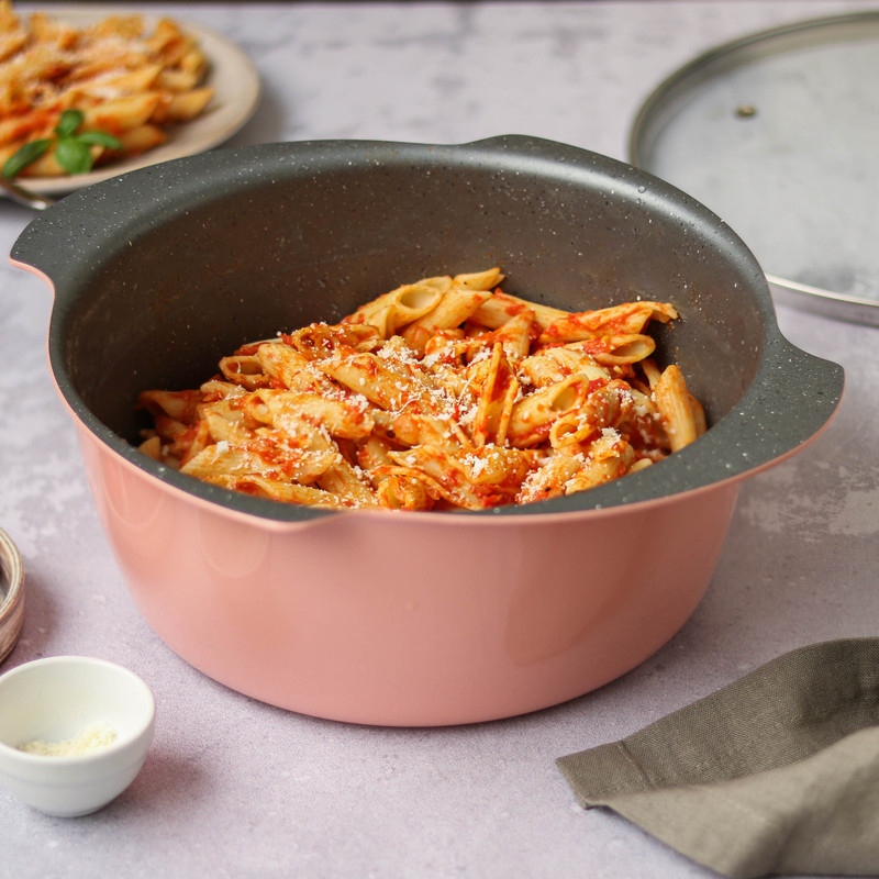 سرویس پخت 4 پارچهی «تکنو» مدل «Butterfly» با داشتن ظروفی جمعوجور و اقلامی بسیار مختصر ولی کاربردی برای خانوادههای دو تا چهارنفر مناسب خواهد بود. حتی اگر برای نوعروسان بهدنبال یک سرویس پخت هستید که بهطور روزمره مورد استفاده واقع شود، این مدل را به شما پیشنهاد میکنیم. سرویس پخت تکنو از بدنهی آلومینیوم با روکش گرانیت ساخته شده است که امکان پخت غذایی سالم و بیضرر را برای خانواده فراهم میکند. فقط در رابطه با این ظروف باید نکتههایی را مدنظر داشته باشید که در نگهداری هرچهبهتر آنها به شما کمک میکنند. اولین نکته استفادهنکردن از قابلمهها و تابه روی حرارت بسیار زیاد، بدون وجود موادغذایی یا روغن است؛ زیرا باعث سوختن ظروف میشود. درپوشهای این سرویس از شیشه هستند و میتوانید در حین پخت غذا محتویات ظرف را هم ببینید. سرویس پخت 4 پارچهی «تکنو» مدل «Butterfly» دارای چهار رنگ صورتی، زرشکی، نسکافهای و مشکی است. این تنوع رنگ این امکان را به شما میدهد باتوجه به سلیقه خود رنگ مورد نیاز خود را انتخاب کنید.